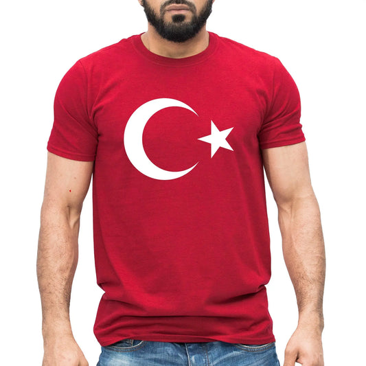 Türkei-Flagge Kurzarm Casual T-Shirt in Rot | Neumond-Stern Design