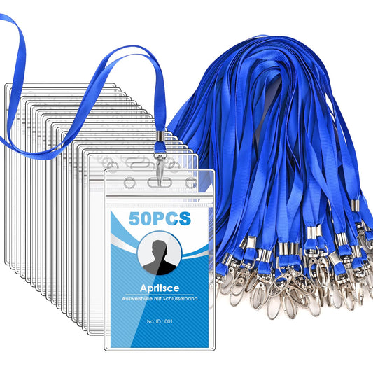Apritsce Ausweishülle mit Schlüsselband (50 Stück): Vertikaler Kartenhalter für Business in Blau