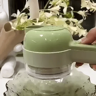 • 4-in-1 Wireless Elektrischer Gemüseschneider mit USB-Aufladung | Zerkleinern, Schneiden, Mixen und Schälen