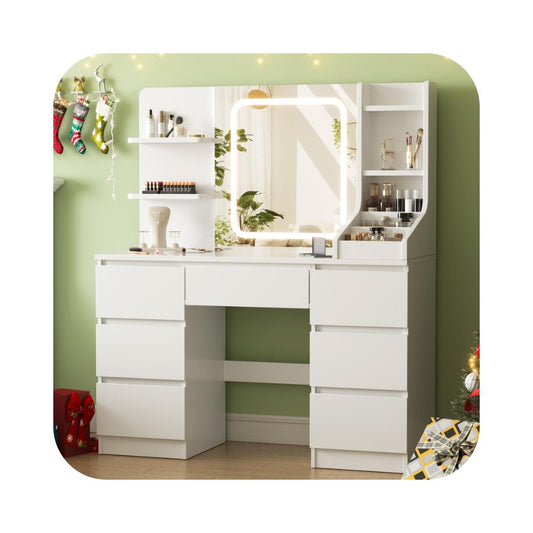 TRIUMPHKEY Schminktisch mit LED-Beleuchtung | 7 Schubladen, Touch-Spiegel