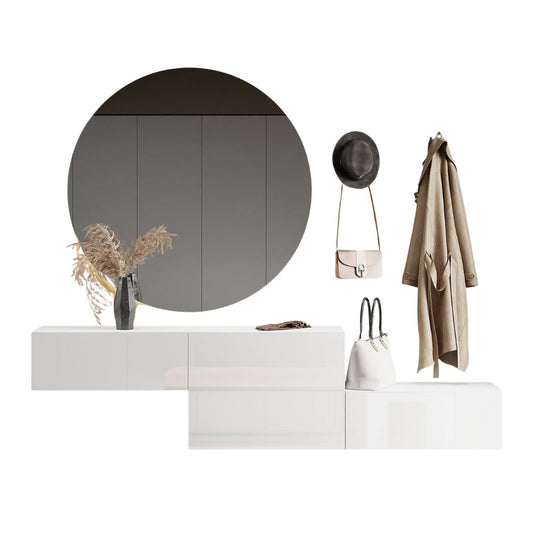 Planetmöbel Flurgarderobe (2x160cm) inkl. Rundspiegel mit Beleuchtung (100cm) in Weiß