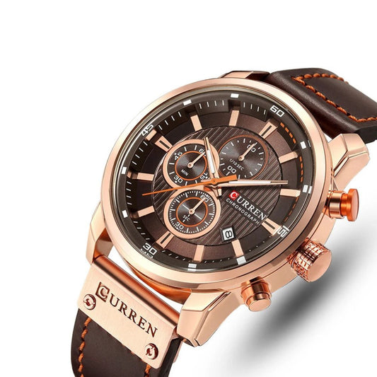 CURREN Luxury Chronograph Quartz Watch for Men with Leather Strap