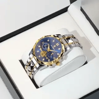 • POEDAGAR Luxus Damen-Armbanduhr aus Edelstahl | Elegant, Wasserdicht, Diamanten Style (Stahl-Blau)