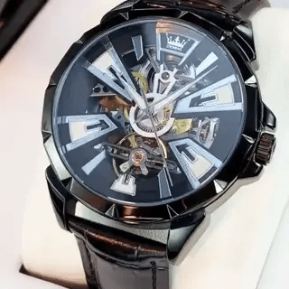 • Tourbillon Automatik Mechanische Herrenuhr | Edelstahlgehäuse, Lederarmband, Leuchtzifferblatt, Wasserdicht