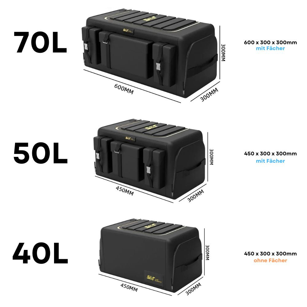 Easy to use: With the practical folding mechanism and the freely combinable dividers, you can adapt the box to your individual needs. Perfect for flexible space allocation in the trunk.