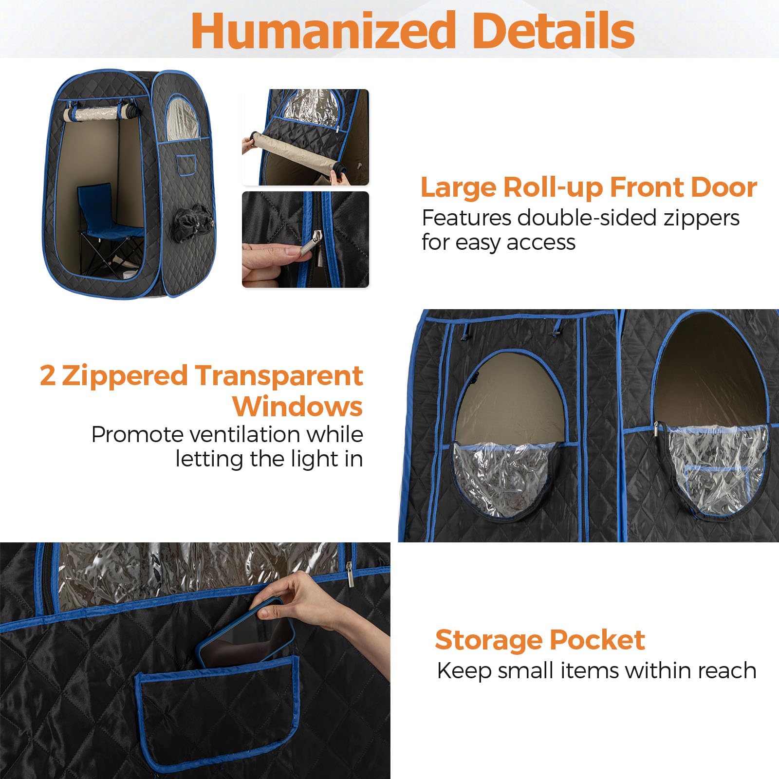HOMASIS Steam Sauna for Home with Remote Control, Folding Chair & Foot Massager (Black)