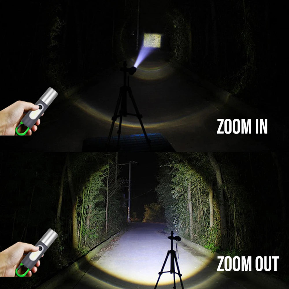 This compact and portable Mini Super-White Laser COB flashlight is the ideal companion for camping, hiking or everyday use. Thanks to its powerful luminosity and versatile functions, it offers you exactly the light you need, no matter what the situation.