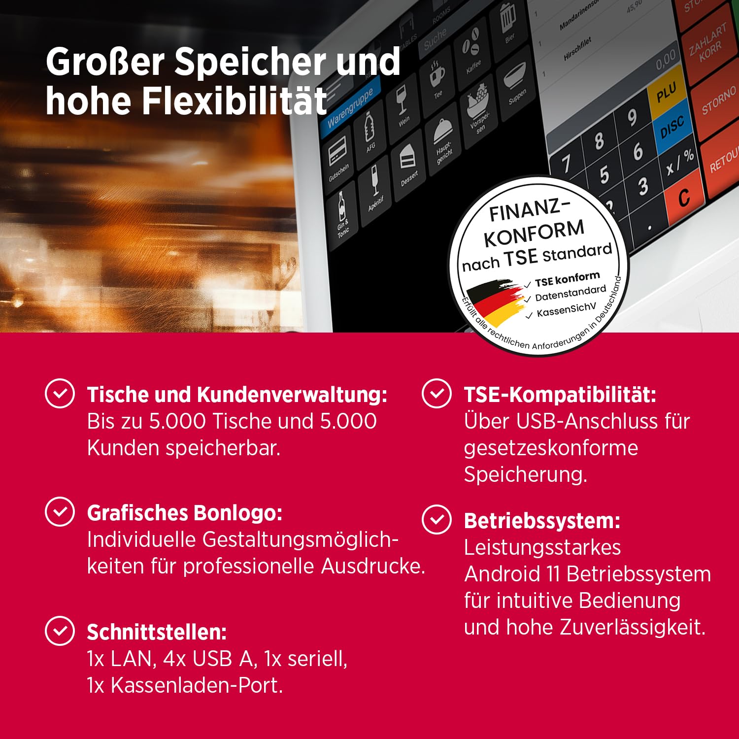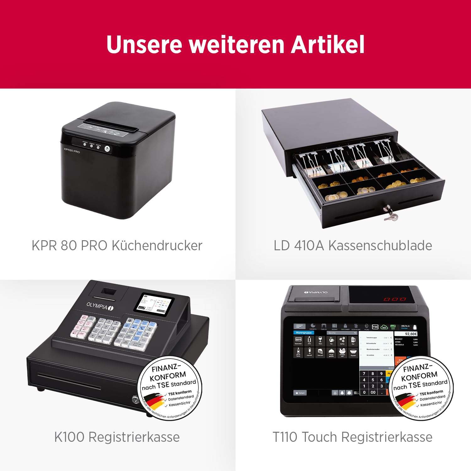 The Olympia TS10 is a compact and user-friendly POS system ideal for use in the hospitality and retail industries. Whether in a café, restaurant, or retail store, this system offers all the basic functions for smooth operations directly at the point of salewithout the need for a PC or external software .