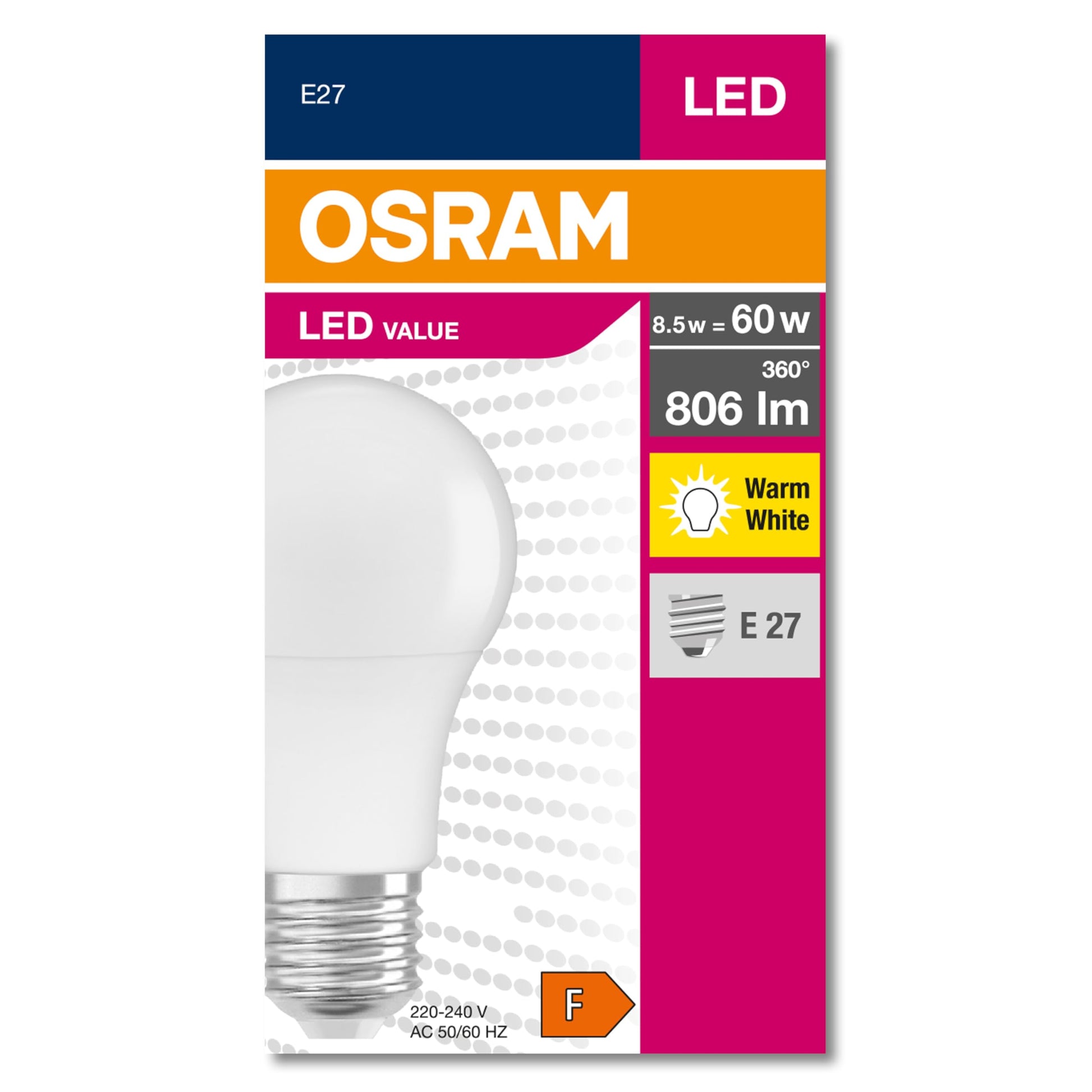 OSRAM LED with E27 base (8.5W warm white: 2700K): Matt 10-pack