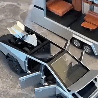 • Realistic Design: Faithful reproduction of the TESLA Cybertruck with trailer and motorcycle.