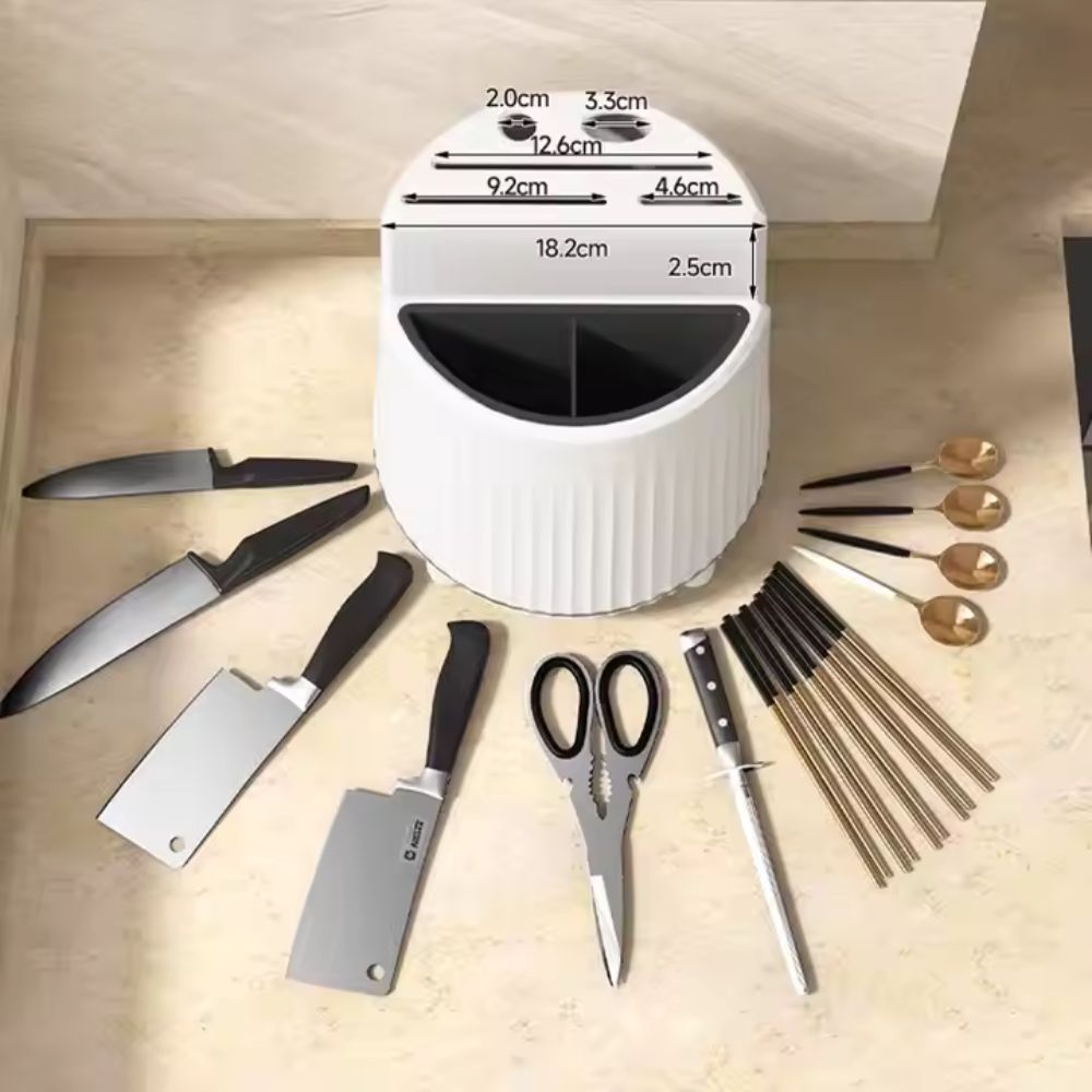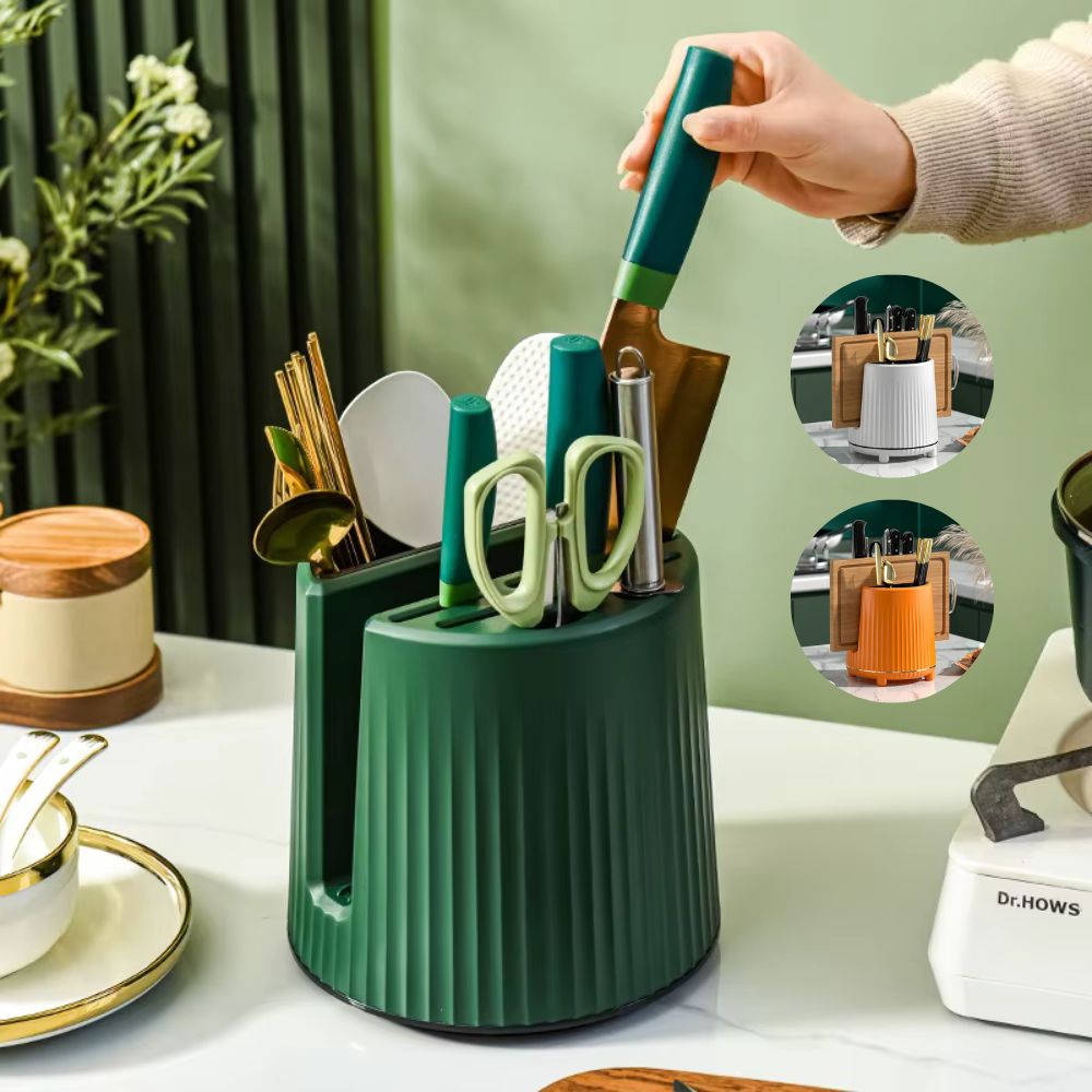 Porte-couteau et ustensiles rotatif avec compartiment pour planche à découper | Organisateur de cuisine multifonctionnel pour couverts