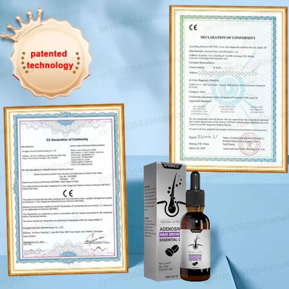 Ce sérum contient de l'adénosine, un actif révolutionnaire qui s'est avéré plus efficace et mieux toléré que le minoxidil. Selon des études de la National Library of Medicine des États-Unis et des National Institutes of Health, l’adénosine fournit :