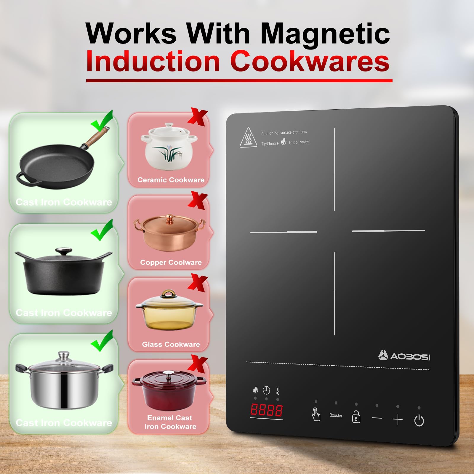 - 【Reinigung】 Mit Glaskeramikplatte, leicht zu reinigen, bitte kühlen Sie das Induktionskochfeld vor der Reinigung ab. Aobosi Induktionskochfeld macht Ihr Kochen einfacher.