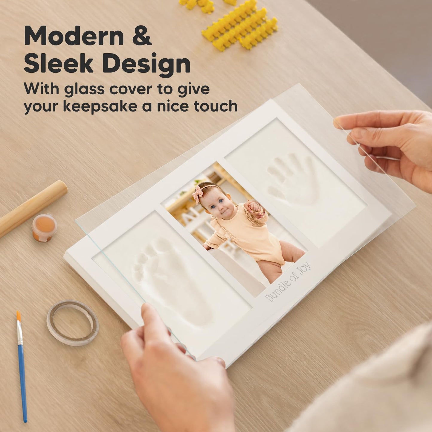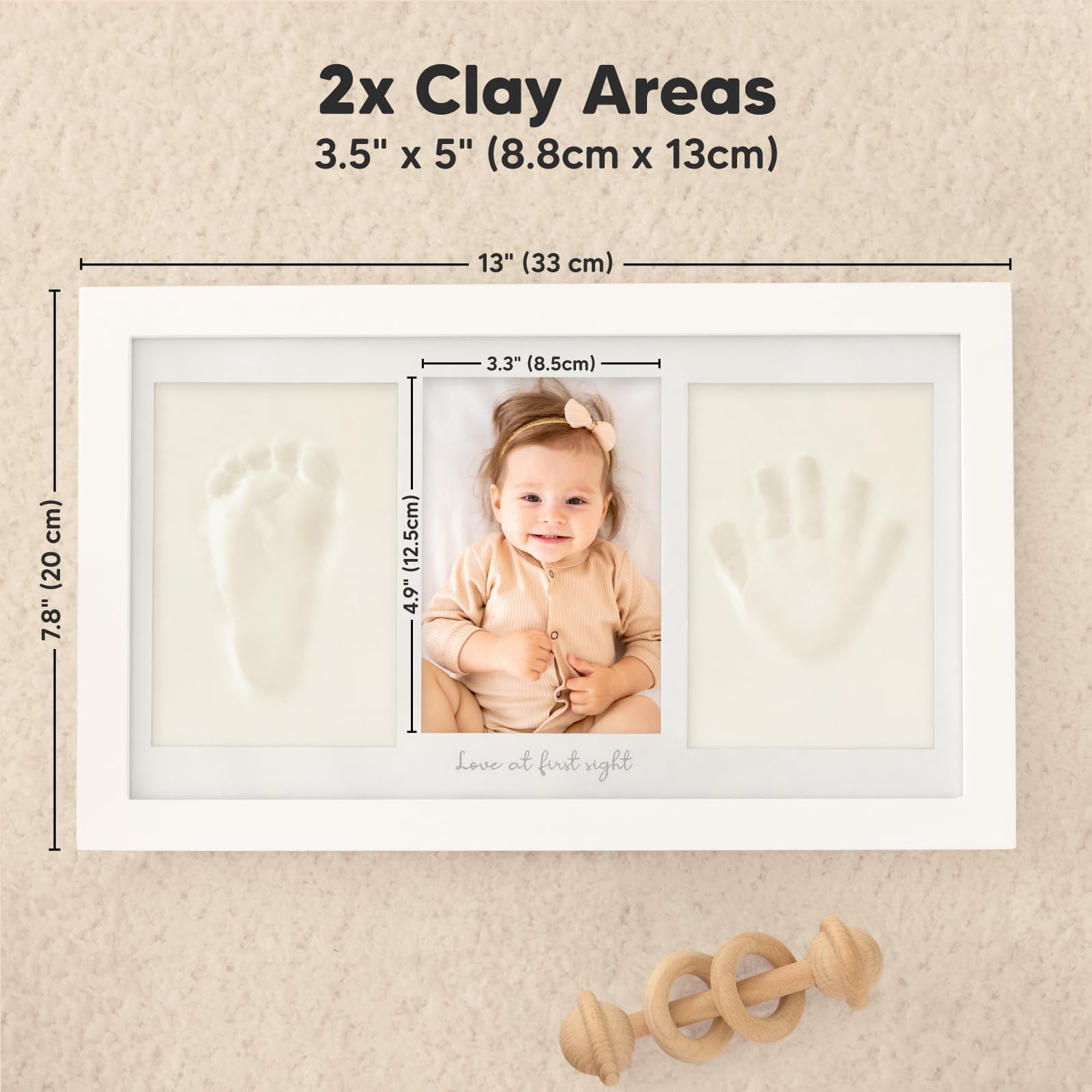 Baby Hand- und Fußabdruck-Set aus Gips für Neugeborene inkl. Bilderrahmen (Alpine-Weiß)
