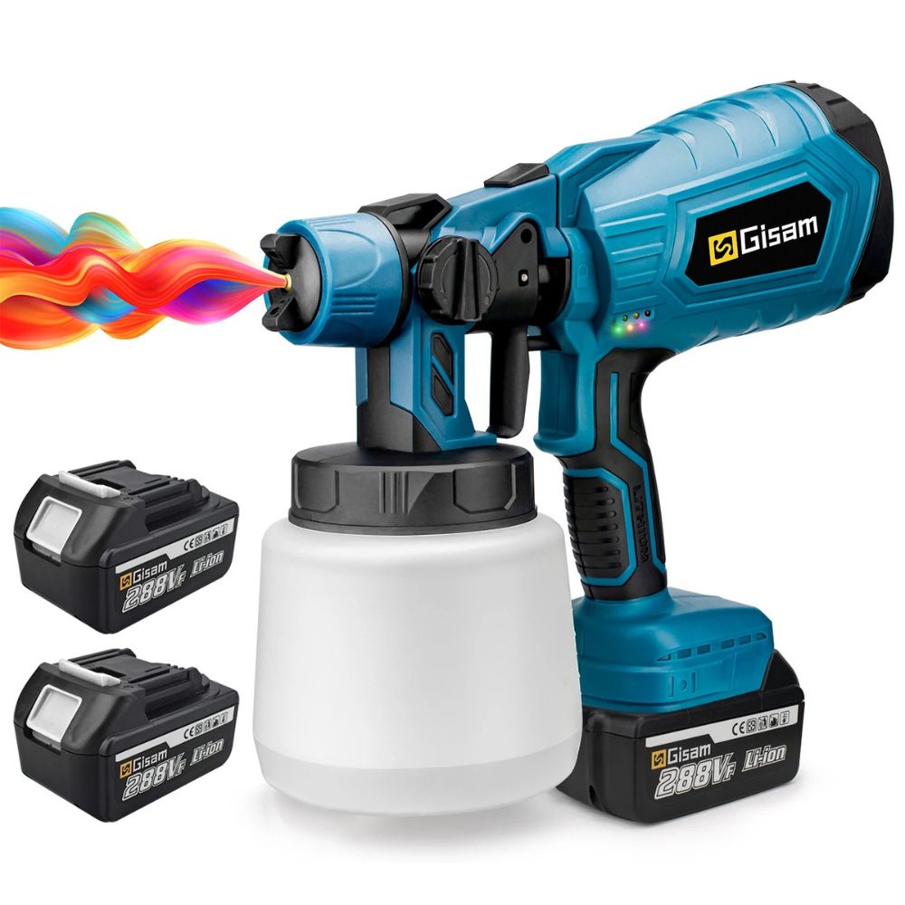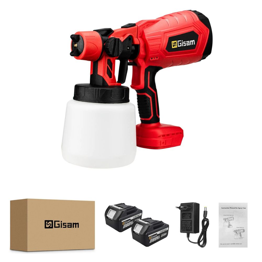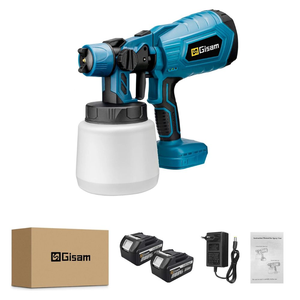 GISAM Akku-Farbsprühsystem (1000ml) mit 2 große Akkus, 4 Düsen | Kompatibel mit Makita 18V Akku