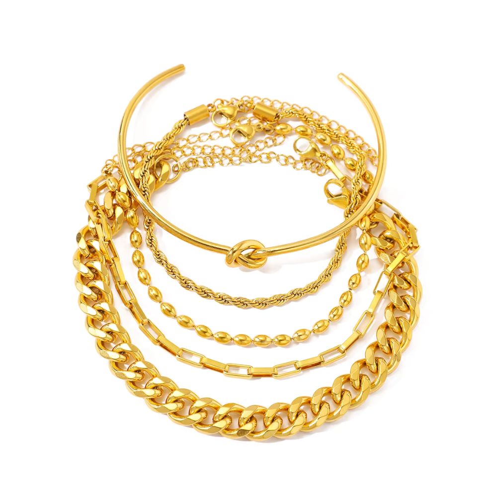 Verleihen Sie Ihrem Stil einen Hauch von Eleganz mit diesem hochwertigen 5-teiligen Armband-Set aus Edelstahl.