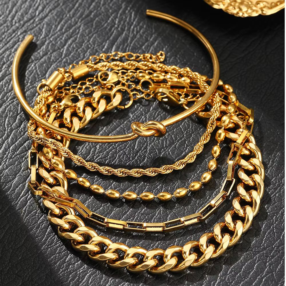 Modisches Edelstahl-Armband-Set | Luxuriöses Schmuckgeschenk für Damen (Gold)