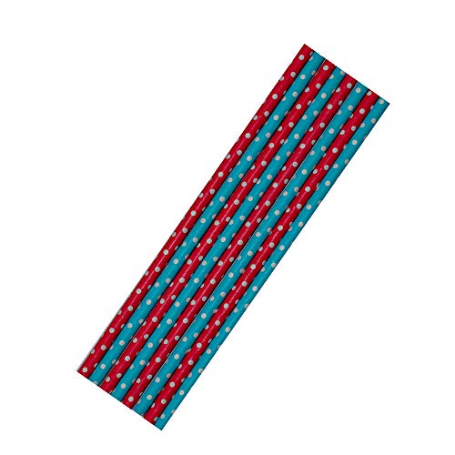 - 8 Papiertrinkhalme in rot-weiß und blau-weiß gepunktet