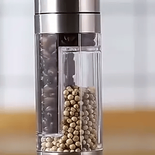 Das innovative Design bietet zwei Kammern - eine für Salz und die andere für Pfeffer oder Ihr Lieblingsgewürz. So haben Sie alles griffbereit und sparen Platz in der Küche. Dank der verstellbaren Keramikmahlwerke können Sie die Körnung präzise von fein bis grob einstellen, passend zu Ihren kulinarischen Kreationen.