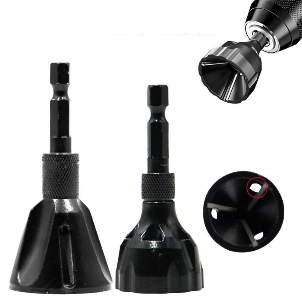 Sicher und effizient, dieses Werkzeug rasiert leicht die Außenkanten einer abgeflachten Schraube ab. Einfach an einer Bohrmaschine zu befestigen und sanften Druck auf den Schraubenkopf auszuüben. Dies vereinfacht den Reparaturprozess und spart Ihnen Zeit und Geld für den Ersatz teurer Hardware.
