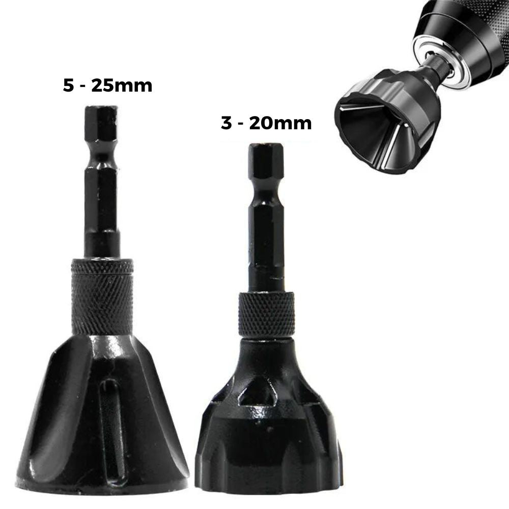 Mit seinem 1/4-Zoll-Sechskantschaft und Schnellspanner-Design passt es zu den meisten Bohrmaschinen, einschließlich Lithium-Ionen-Bohrern, Handbohrern und Tischbohrern. Dank seiner breiten Anwendbarkeit können Sie verschiedene Metalle wie Edelstahl, gehärteten Stahl, Messing, Kupfer, Aluminium, Fiberglas und sogar Holz oder Kunststoff reparieren.
