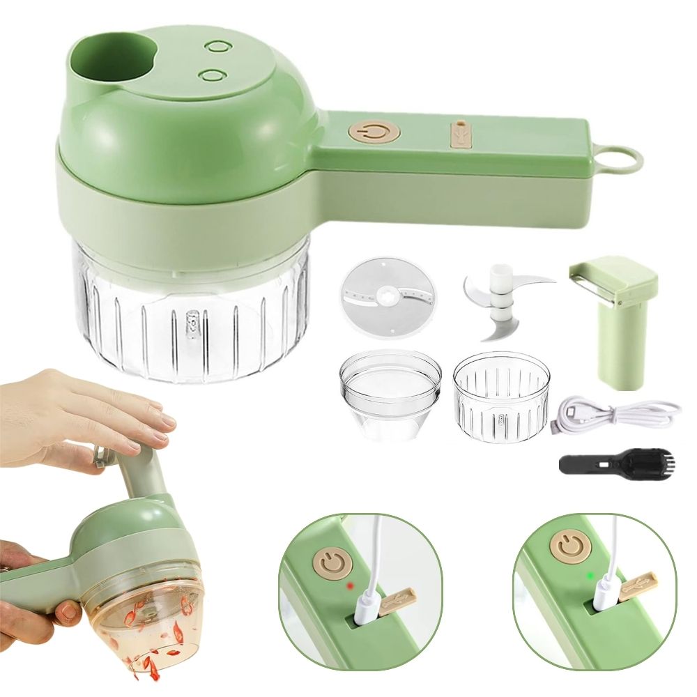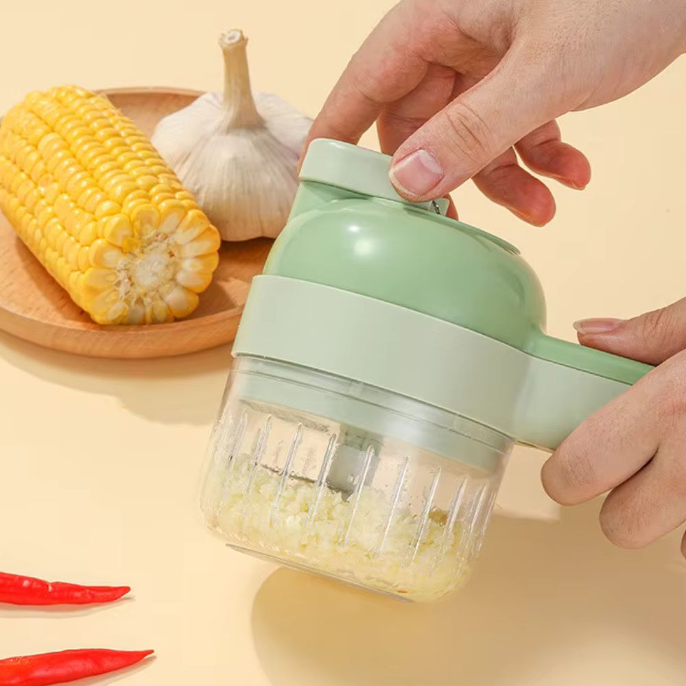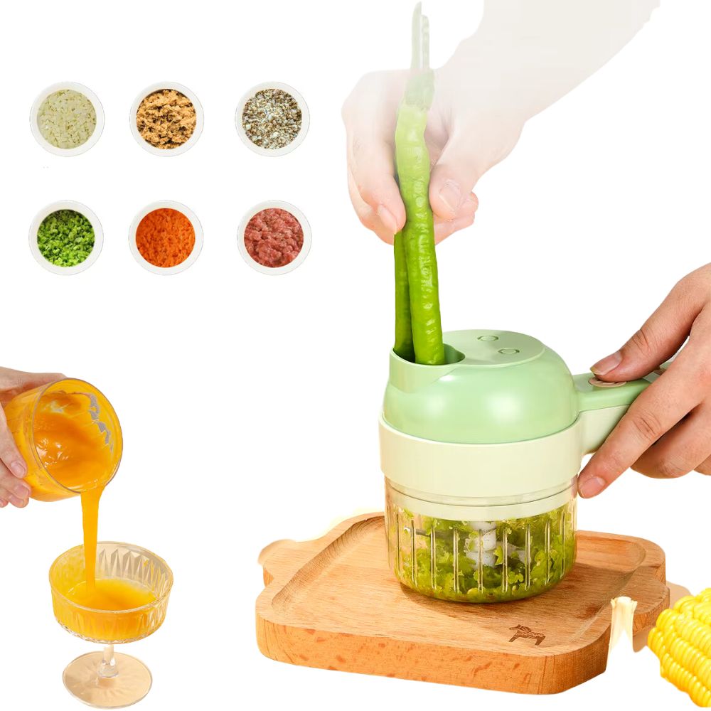 4-in-1 Wireless Elektrischer Gemüseschneider mit USB-Aufladung | Zerkleinern, Schneiden, Mixen und Schälen4-in-1 Wireless Elektrischer Gemüseschneider mit USB-Aufladung | Zerkleinern, Schneiden, Mixen und Schälen