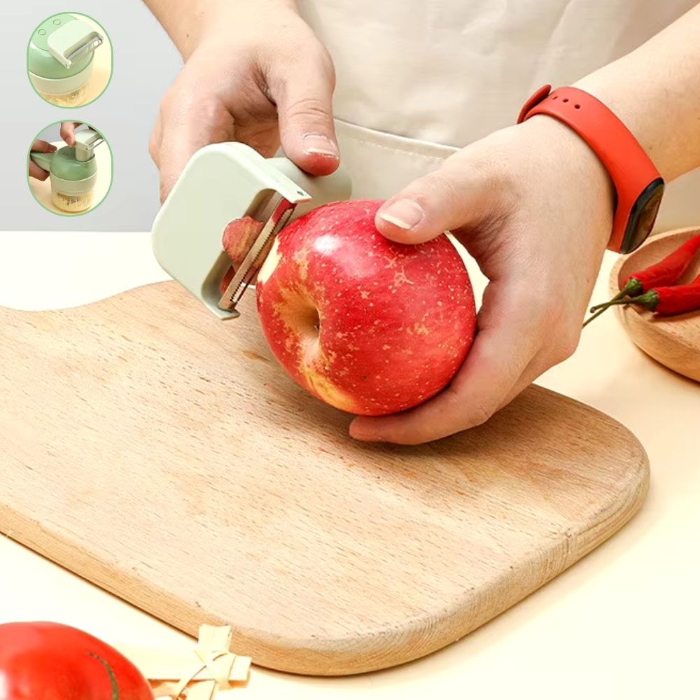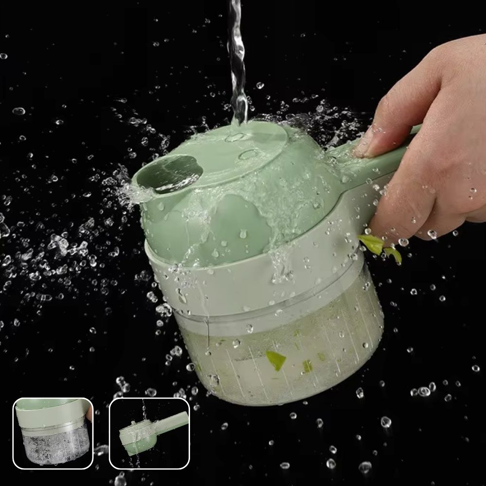 4-in-1 Wireless Elektrischer Gemüseschneider mit USB-Aufladung | Zerkleinern, Schneiden, Mixen und Schälen (GIF2)