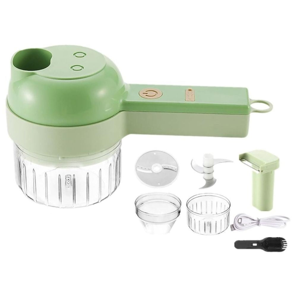 4-in-1 Wireless Elektrischer Gemüseschneider mit USB-Aufladung | Zerkleinern, Schneiden, Mixen und Schälen