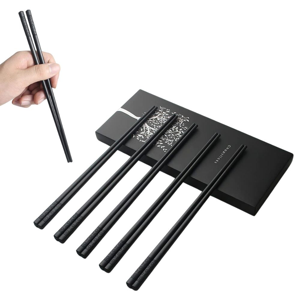Japanische Fiberglas Essstäbchen: Spülmaschinenfest, Wiederverwendbare Legierung (Schwarz)