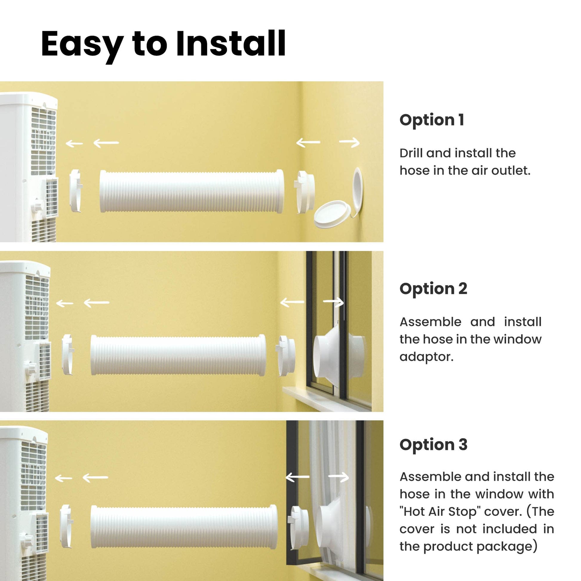 Flexibler Einsatz: Einfach zu montieren - inkl. Abluftschlauch, Fernbedienung, Adapter & Dichtungen.