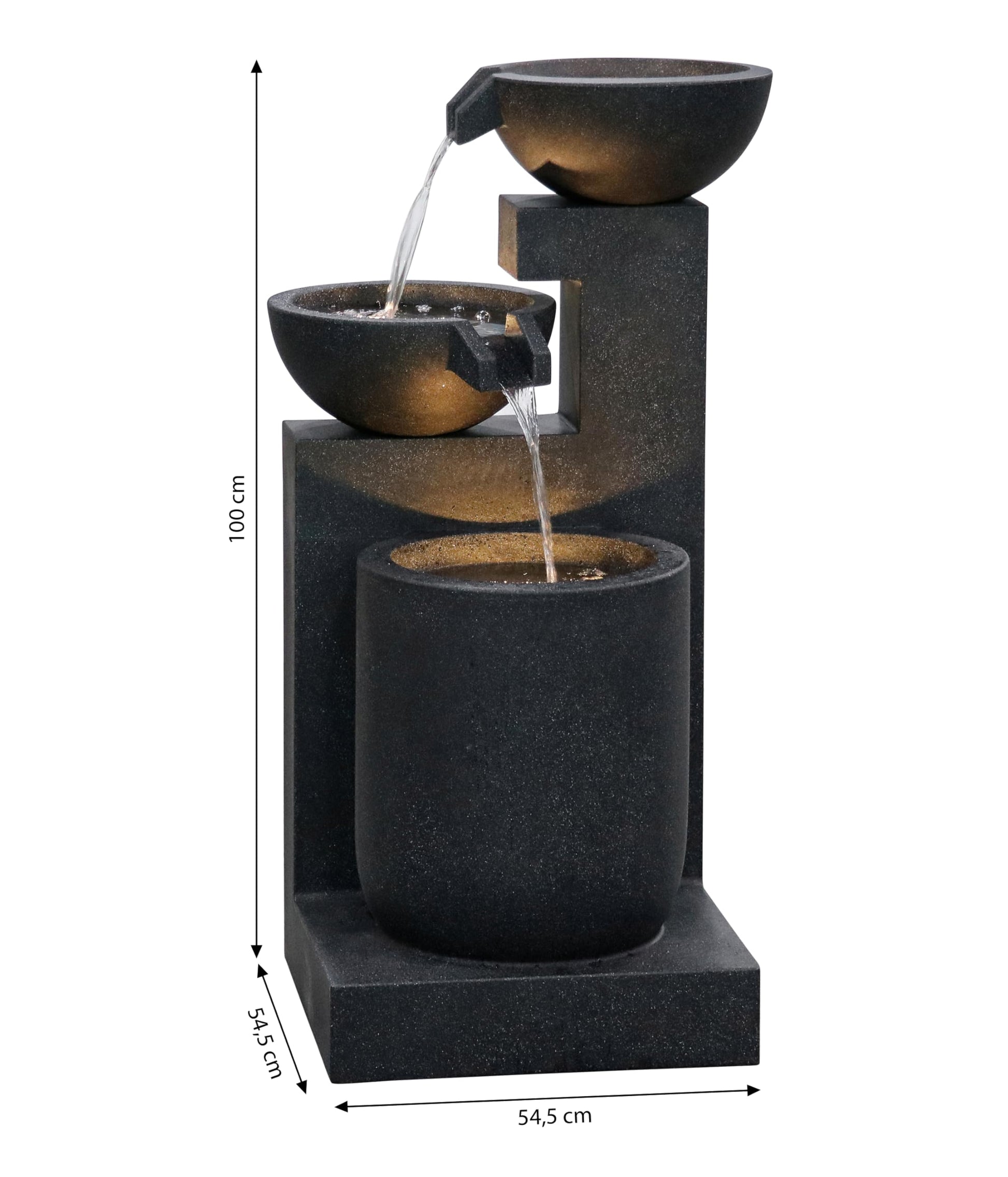 Dehner Gartenbrunnen Samson, Terassenbrunnen frostbeständig, Brunnen für Außen, mit LED Beleuchtung, ca. 100 x 54.5 x 54.5 cm, Polyresin, schwarz