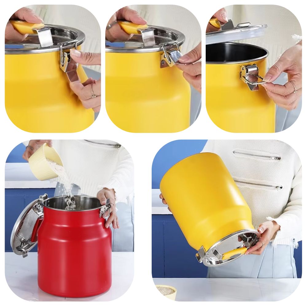 Bringen Sie Ordnung und Frische in Ihre Küche mit diesem hochwertigen Edelstahl-Aufbewahrungstank! Dieser luftdichte Behälter ist die ideale Lösung für die Lagerung von Getreide, Reis, Mehl, Kaffee, Tee, Sojabohnen und vielem mehr...