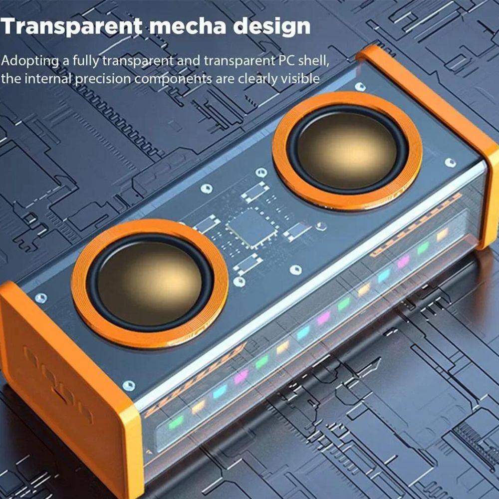 Der transparente Mecha TWS Bluetooth-Lautsprecher bietet 360° Panorama-Soundeffekte und bewegliches Licht, das sich mit dem Ton synchronisiert und die Musik in ein audiovisuelles Erlebnis verwandelt.