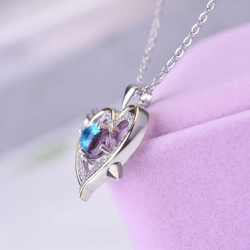 Silberherz Halskette mit Lila-Blauem Zirkon | 925 Sterling Luxus Schmuck für Frauen