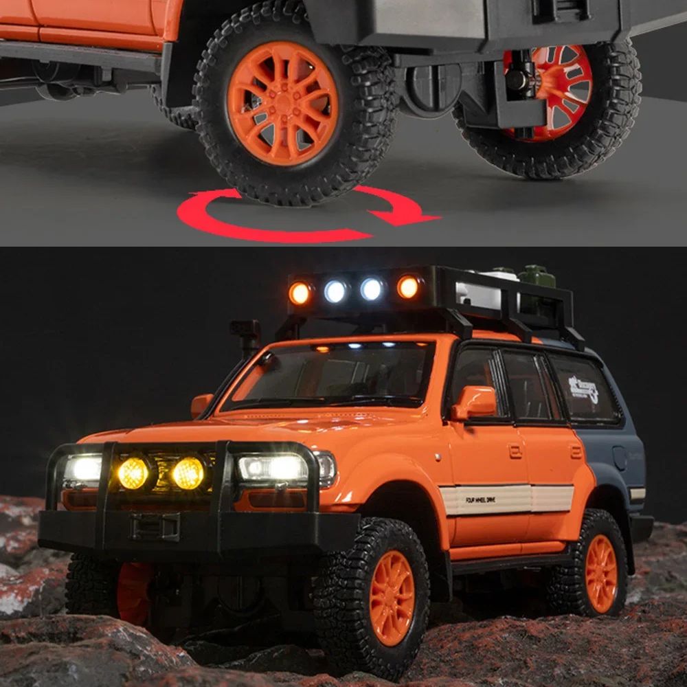 TOYOTA Land Cruiser LC80 (1:24) Offroad-Spielzeugauto mit Licht & Sound, Rückziehfunktion (Orange)