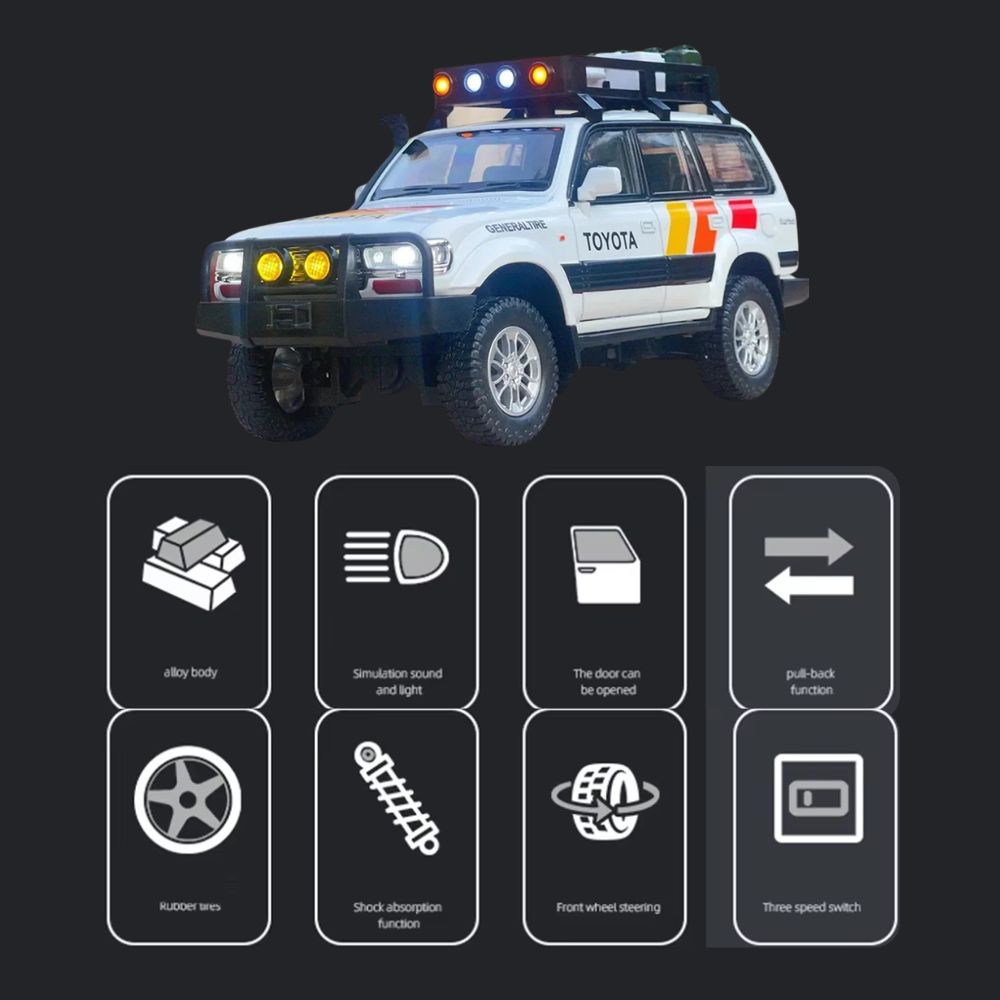 TOYOTA Land Cruiser LC80 (1:24) Offroad-Spielzeugauto mit Licht & Sound, Rückziehfunktion