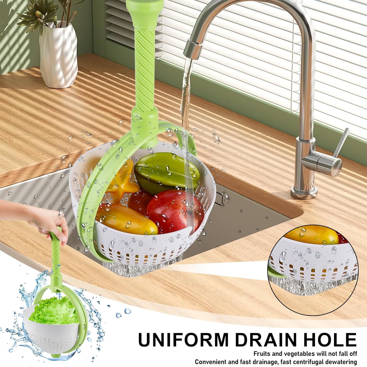 360° Rotierender Abtropfkorb | Salatschleuder mit klappbarem Griff 4
