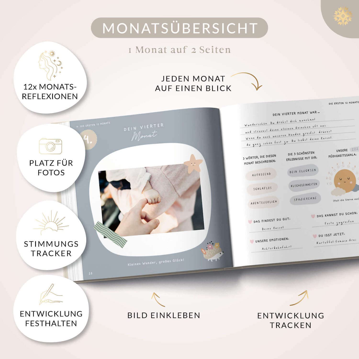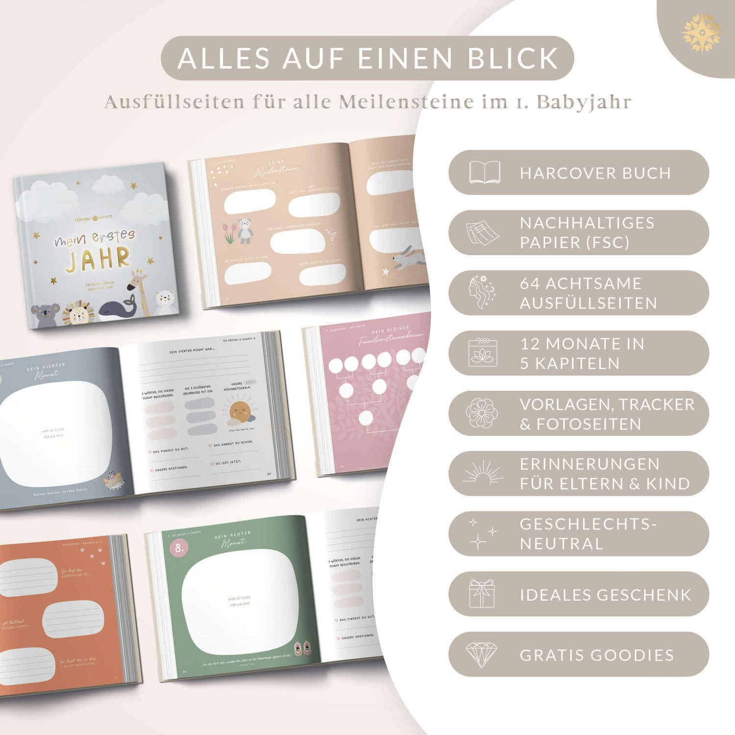 Das Album eignet sich perfekt als Geschenk zur Schwangerschaft oder Geburt und fördert gleichzeitig Achtsamkeit & Selbstfürsorge für Eltern. Ein spezieller Day-Tracker ermöglicht die Erinnerung an tägliche Ereignisse.